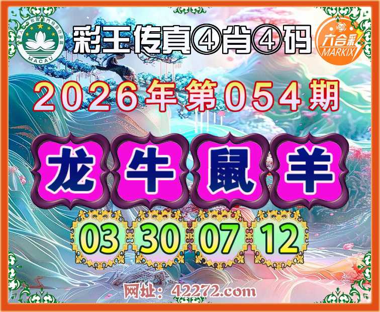 054期:《彩王传真》 ④肖④码【龙牛鼠羊】【03.30.07.12】开:羊48准见证上榜