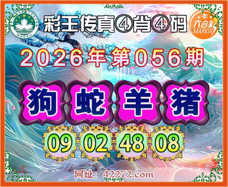 056期:《彩王传真》 ④肖④码【狗蛇羊猪】【09.02.48.08】开:羊48准见证上榜