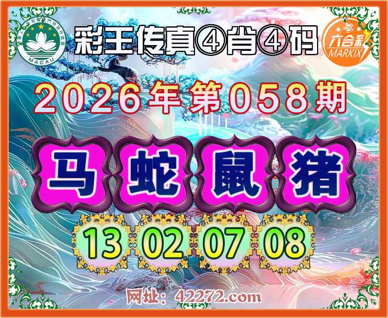 058期:《彩王传真》 ④肖④码【马蛇鼠猪】【13.02.07.08】开:鼠31准见证上榜